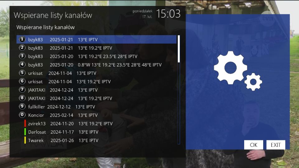 UWAGA WAŻNE !!!! ZRESTARTUJ DEKODER LUB INTERFEJS DEKODERA USTAWIENIE WTYCZKI UPGRADELIST