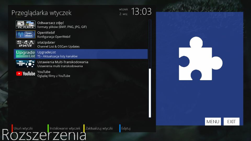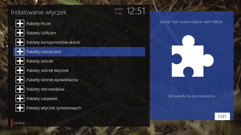 JEŻELI NIE MA WTYCZKI, NALEŻY ZAINSTALOWAĆ CAŁE OPROGRAMOWANIE OD NOWA ALBO ZAINSTALOWAĆ WTYCZKĘ. INSTRUKCJA PONIŻEJ – TYLKO DLA OPENATV.