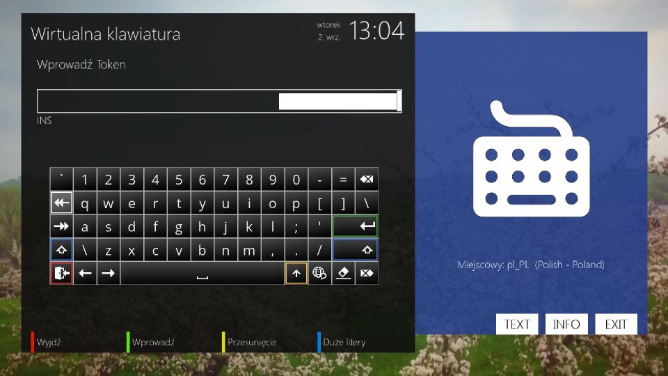 JEŻELI POLE TOKEN JEST PUSTE WPISZ TOKENA NACISNIJ ZIELONY PRZYCISK NA PILOCIE, JEŻELI CHCESZ UŻYĆ KLAWIATURY EKRANOWEJ NACIŚNIJ OD RAZU ZIELONY PRZYCISK NA PILOCIE