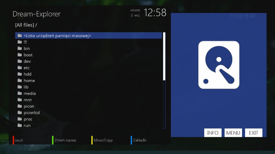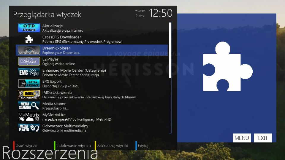 jeżeli nie mamy DreamExplorera możemy go zainstalować ( z wyjątkiem nboxów) Menu,Wtyczki(pluginy), pobieranie/instalacja wtyczek, w zakładce - extensions poszukać.