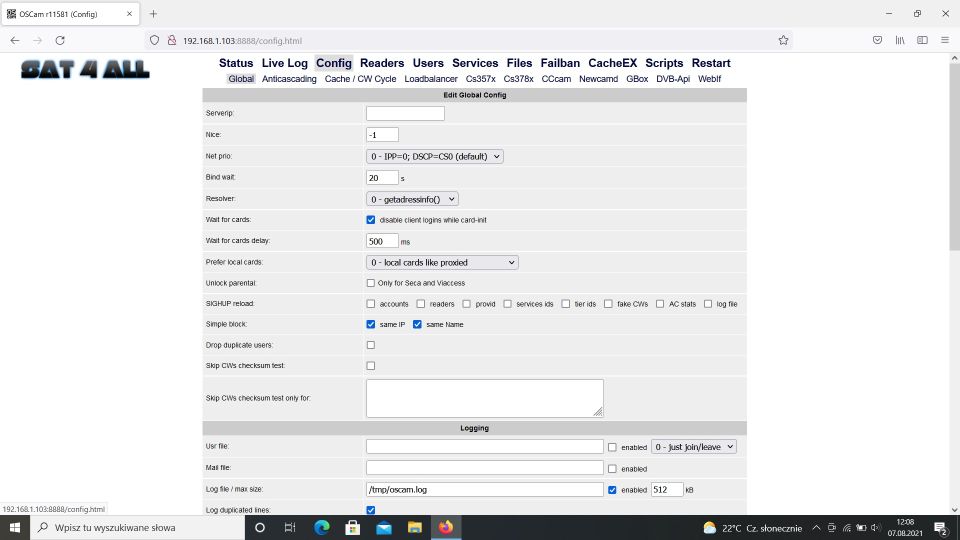 I. VAR ->KEYS -> OSCAM_SCI0 ALBO CONFIG -> OSCAM.SERVER