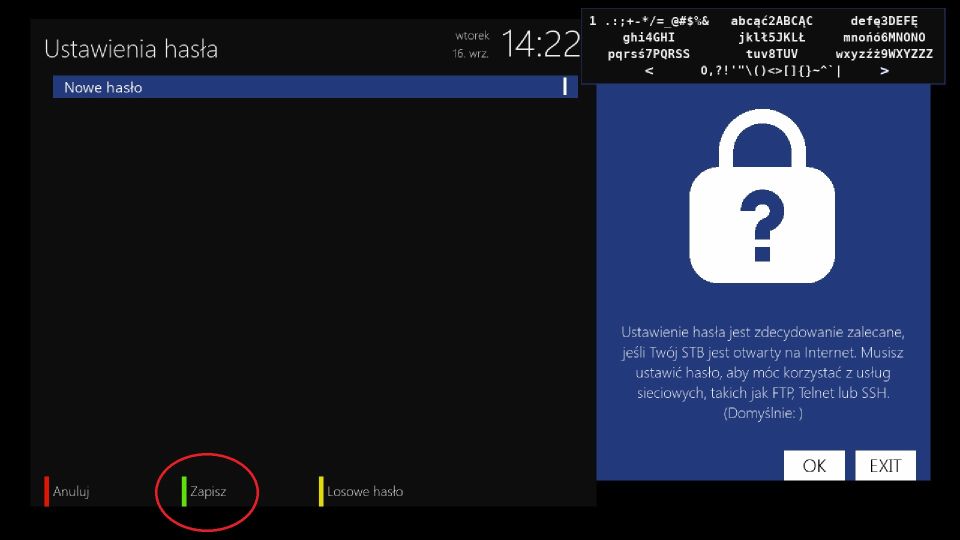 JEŻELI BĘDZIE KOMUNIKAT "PASSWORD INCORECT" WPISZ LOGIN I PASSWORD JESZCZE RAZ. JEŻELI NADAL BĘDZIE PROBLEM USTAW NOWEW HASŁO W DEKODERZE ZMIANA HASŁA