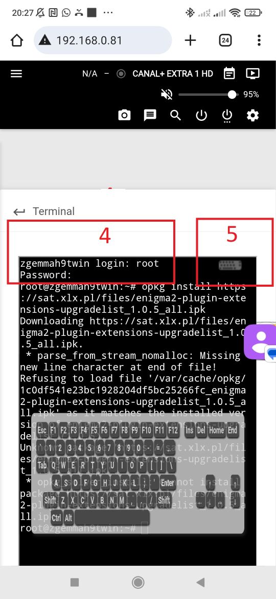 UWAGA !!! PO WEJŚCIU MUSI BYĆ WIDOCZNY NASZ PLIK INSTALACYJNY!!! enigma2-plugin-extensions-upgradelist_1.0.5_all.ipk, enigma2-plugin-s4aupdater-current.ipk ITP.